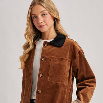Peace Love Line - Wholesale Coat - Women's - PL4686 - CORDUROY BUTTON DOWN BARN COAT INNER PLAID