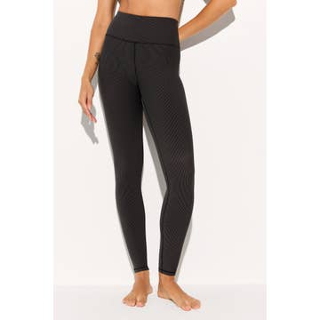 Seamless bamboo leggings with ribbed waistband. Comfortable and breathable, ideal for long yoga sessions or relaxing moments. 87% Bamboo 10% PA 3% EA