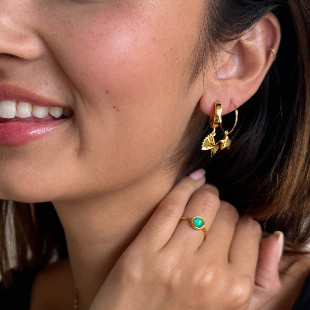 A dopamine inducing color changing mood stone bezeled charm. A playful charm and pop of color to add to your charm bar! Measures 7.5mm. Please note this charm does NOT include a jump ring on it. Jump rings are available for purchase *separately* for you to add on. If you want a jump ring on your mood stone charm, please add both options to your card. Our materials make for an amazing, high quality, seamless, jewelry piece with longevity. Our charms are plated with 18k gold, 18k rose gold, or rhodium and finished with a protective coating. A little secret we’ll keep between us: it looks way more than it costs.