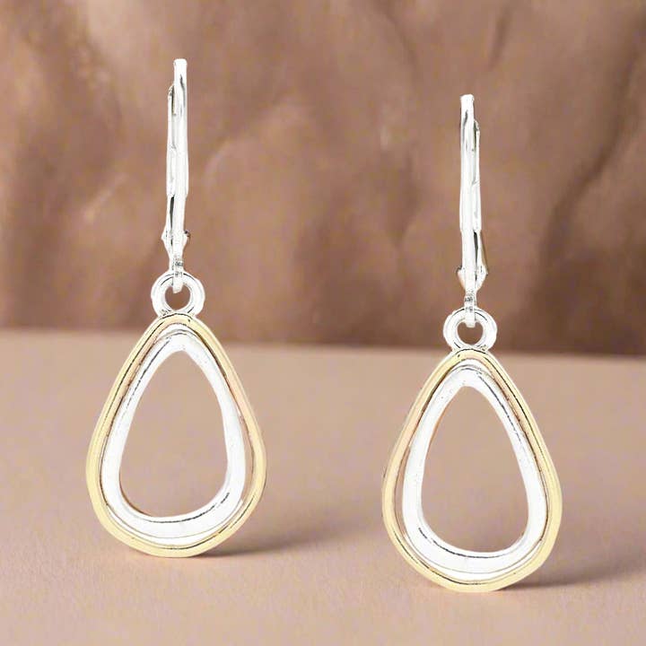 12mm teardrop-shaped white rainbow moonstone cabochon bezel set in 14kt gold-filled with a textured sterling silver backing. Top measures 13mm x 18mm on a sterling band with an oxidized groove.