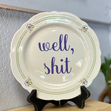 PLEASE NOTE: The product photo shows a sample plate. The delivered product will be the exact text design on a different unique plate from our collection, if not the plate in the product photo. Our sassy plates are great for every occasion. They are great gifts for everyone you know, with a sense of humor that is. These are definitely not your grandmas china. Custom sayings are available! Due to age of plates, you may see some scratches or marks, but it definitely adds character. The plates are for decoration ONLY. Do not wash (I promise they're clean) or put in the microwave. Not for daily use or food. Plates sizing ranges from 6-10 inches approx