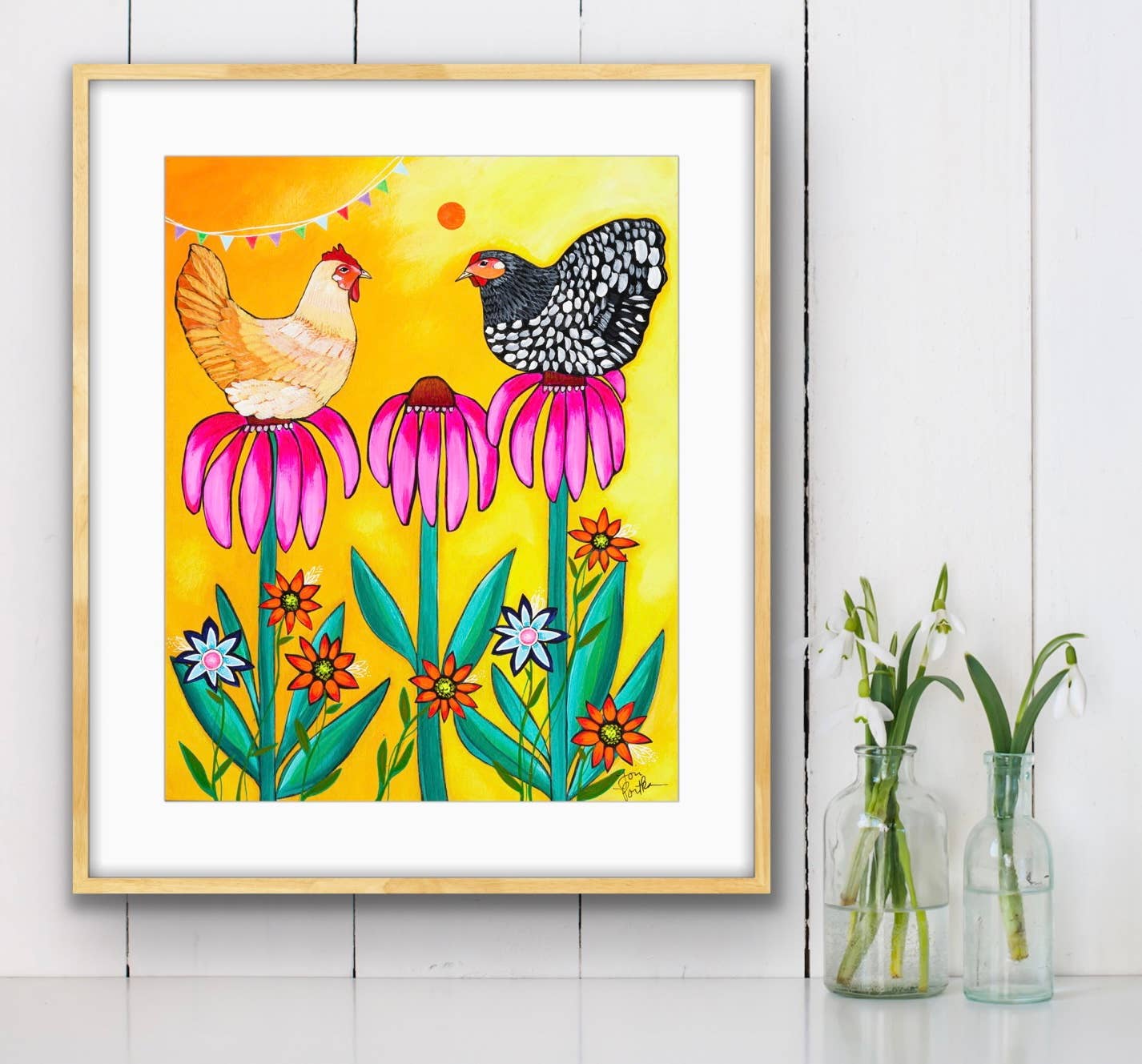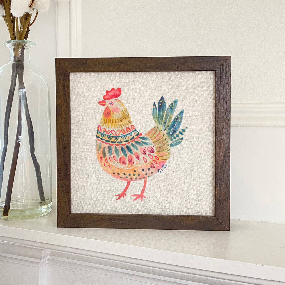 Message from the Artist: I have a tenderness for chickens. It may be due to Minecraft with my sons, gathering a flock, giving them love through seeds and collecting their eggs. The chickens gleefully follow you for miles through the trees and grass. 5x5, 8x8 and 12x12 inch paper prints have a 1/8th inch margin around the image on the print, and fit standard frames. Art Prints are created onto premium-quality heavyweight paper with an 8-ink process for vibrant, fade-proof color that illuminates a space. Smooth matte archival prints are hand-signed and carefully packaged for safe travels. Archival materials ensure these ready-to-frame artwork prints will have 100+ beautiful years to inspire tender memories and touch hearts. Prints are each bagged in an acid-free clear bag with a recycled board for protection. The title of each art print is written on the back of the backing board. All prints are created from original paintings created by Katie m. Berggren. www.KmBerggren.com