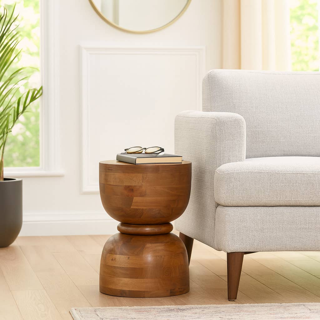100% solid wood handmade wooden stool that can be used as a side table, end table, coffee table, bedside table or any other area you want to use it.