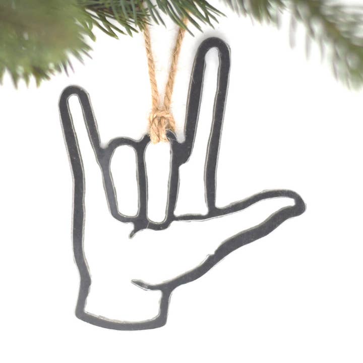 Say 'I Love You' in ASL with a thoughtful sign made from recycled steel. Our signs are also magnetic! Easily display your favorite photos on this magnetic sign. THIS ITEM SET INCLUDES: One steel 'I Love You' sign in ASL. (Additional decor items and magnets pictured are not included.) DIMENSIONS: 14"x12" WEIGHT: 6oz.