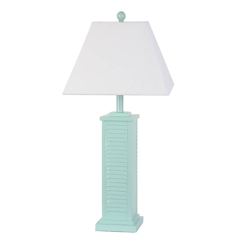 Truly a mix of design and functionality that doesn't compromise on style, this 28" aqua blue urn resin table lamp with white tapered drum shade will be a great addition to your space. A gorgeous aqua/teal blue resin base in a hammered textured design, brings just the right amount of pizzazz to this fabulous lamp. The blue coloration of the lamp base creates a fashionable marriage with the the slim profile white fabric tapered semi drum shaped shade. Add a soft and cozy glow to your room with this groovy lamp. The light that this lamp throws is soft and warm to elevate the look of most any space in your home. 28" H x 15" W x 15" D Comes complete with a slim profile semi drum white cotton linen blend shade that measures 15" L x 12" W x 11" H.High quality and good-looking table lamp with 60" silver cord, silver chrome harp and solid chrome round finial.Includes a On/Off Rotary Switch located on the Bulb Socket UL Listed for safety.
