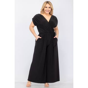 Maggy London Group - Wholesale Jumpsuit - Women's - PLEATED RUFFLE SLV MIXED MEDIA JUMPSUIT WITH BUTTON TABS0