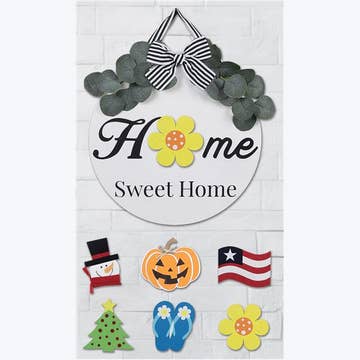 Transform your home's exterior with our DIY door hanger and paint kit! Featuring a charming home sweet dog house design, this kit allows you to create a unique and personal touch to your entrance. Get ready to impress your guests and make your neighbors bark with envy! (Only 45 words, 2 exclamation points) 18" Door Hanger Kit or 10" Round with Stand Pre-cut for easy painting Scored for easy assembly This is an unfinished DIY kit that is ready for you to paint or stain as you like. All pieces will come unassembled for easy painting, Gluing will be required when assembling Laser cut from 1/4" sustainable Sanded Poplar Wood. Blemish Free, Knot Free 10 or 18 inches wide WHAT DO YOU NEED TO HAVE ON HAND - wood stain and/or paint - glue (i.e. wood glue, hot glue, super glue, E6000 etc.) - paint brushes - rope or ribbon hang ****IMPORTANT**** Pictures Showing completed projects for demonstration only