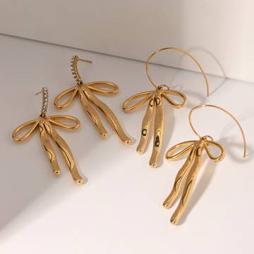 Wholesale Put a Bow on it Earring - 18K Gold Plated