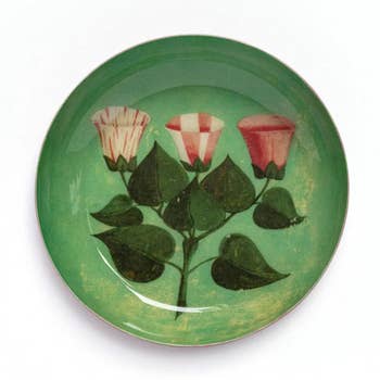 Ceramic with decal art and metallic gold foil rim. Includes gift box packaging. For decorative use only; 0.5” h x 3.75” d.
