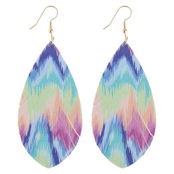 These earrings boast an array of stunning colors starting with a blue rainy day fringe, followed by a leopard print leather, then orange leather, silver leopard leather, and finished with a beautiful metallic pink leather at the bottom. Ideal for customers who prefer a larger style earring. All of our earrings are made using high quality, lead and nickel free, hypoallergenic surgical stainless steel hooks.