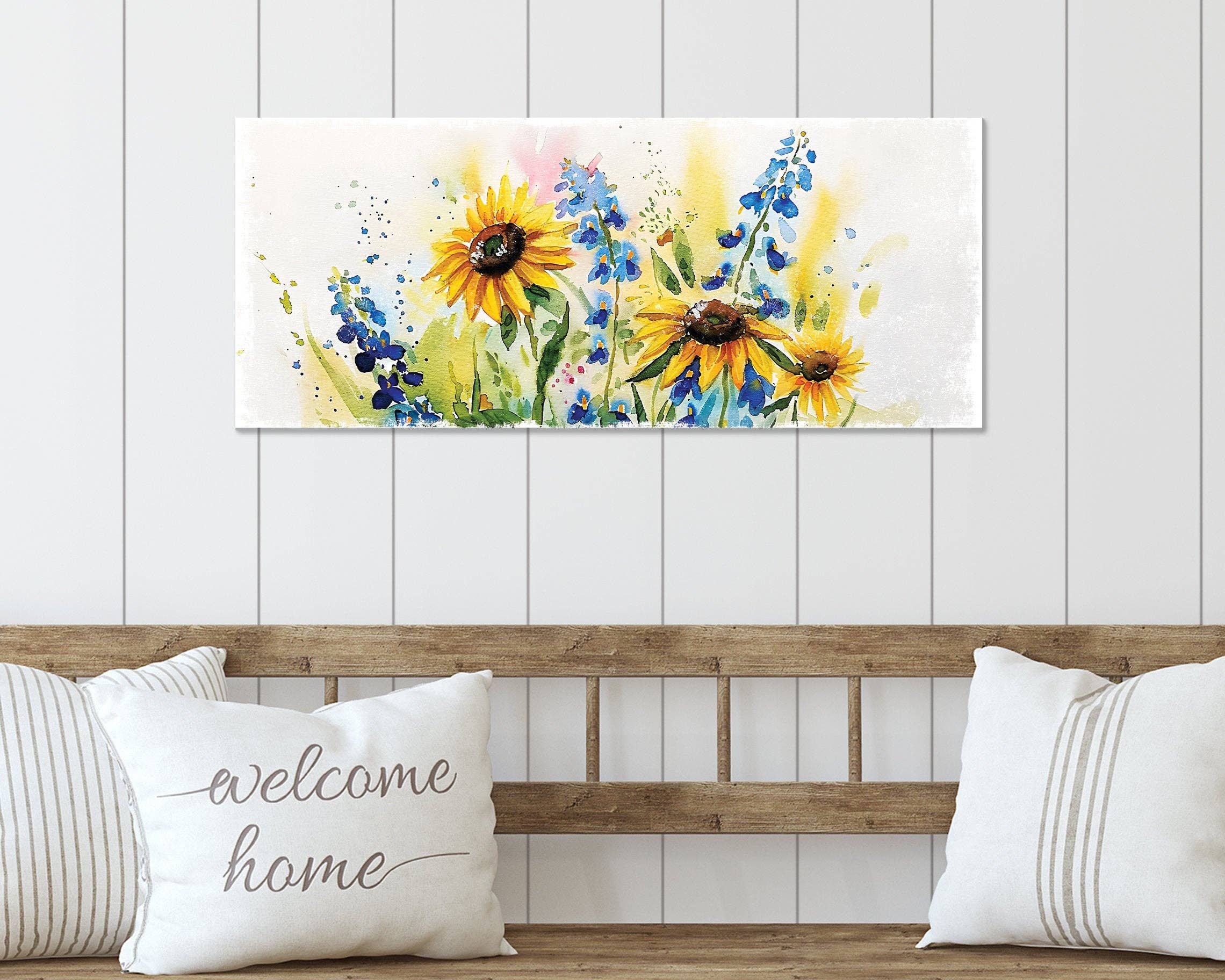 Spring Watercolor Wildflower Wall Sign - 32in Welcoming Home Decor