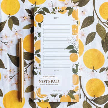 Le Petit Notepads are 100 pages, crisp white paper. Compact 4x6" size, perfect for lists, kitchen counter, purse, tote bag, office space or studio. Original artwork on each notepad. Backing is thick cardboard. Packaged in cello bag, "Le Petit Notepad" sticker on back.