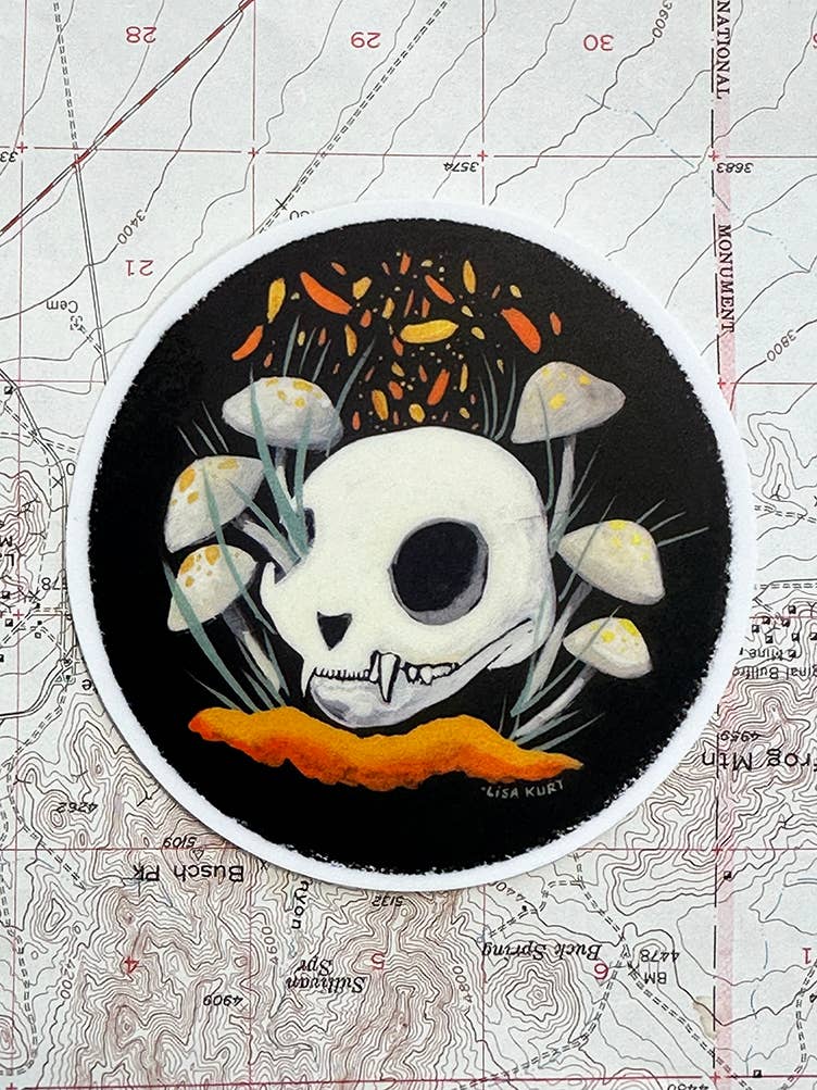 High quality, waterproof, UV resistant, vinyl Forager, a little jackalope among the mushrooms, sticker. These 3" x 3" gloss stickers are lovely and made to last! Adorn your water bottle, computer, iPad case, suitcase, or save in a sticker book. For the sticker collector- these are super fun.