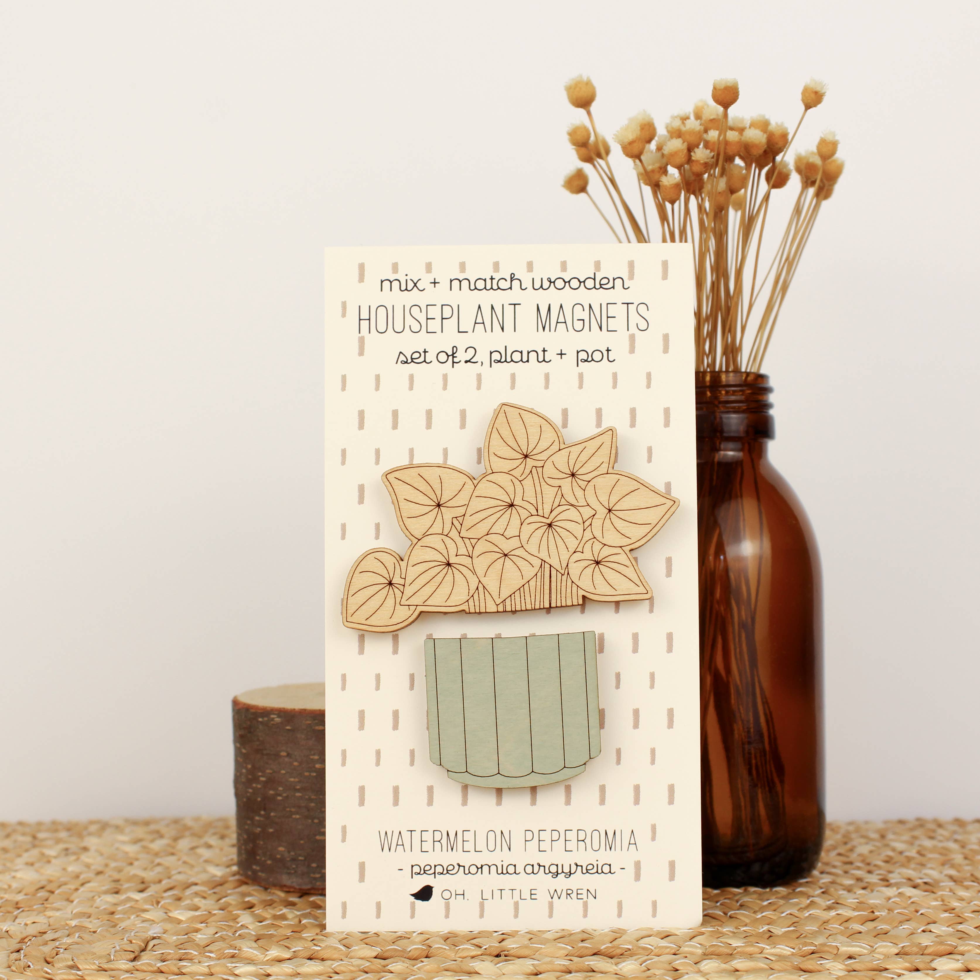 Wood House Plant Magnets | Polka Dot Begonia | Plant Lover Gift