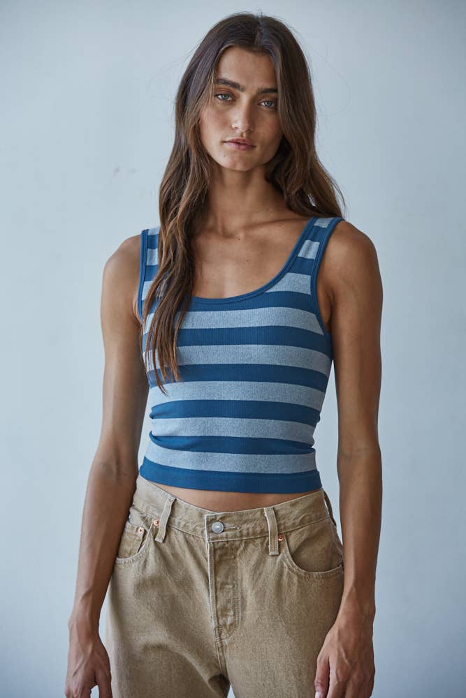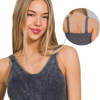 2 Way Neckline Washed Ribbed Cropped Tank Top