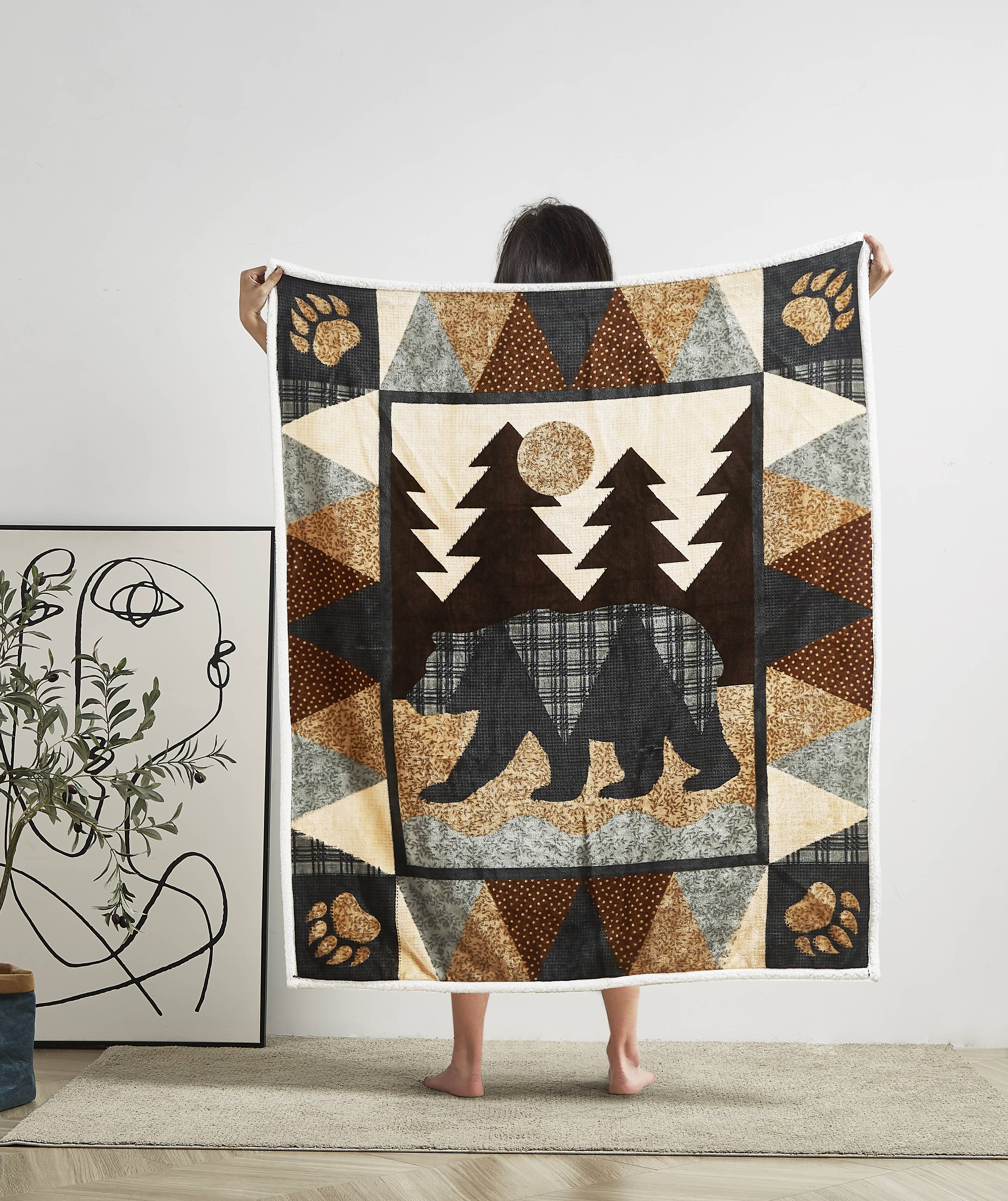 Fleece Blanket, Cozy Pine Tree Design, Winter Home Decor