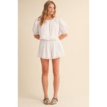 SKU: N25Z147-S Made in China Aesthetic: Casual and Romantic / whimsical Care Instructions: Machine wash Color: White Fabric: Cotton Fit: Junior and Petite Neckline: V-neck Occasion Theme: Everyday Occasion: Day Party and Holiday Season: Spring/Summer Shorts Length: Short Shorts Style: Hot Pants Sleeve Length: Long Sleeve Product Language: English Weight: 400 g (14.11 oz) Packaging: Recyclable