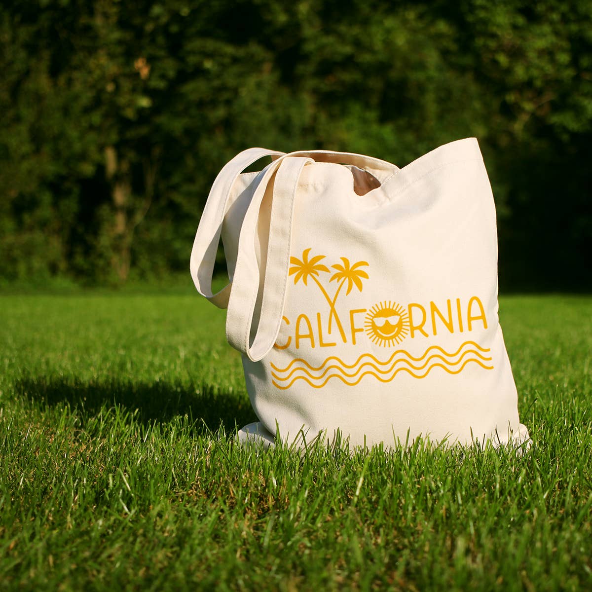 Simple tote in various tourist locations in California. Limited availability. Approx 12”x9” Canvas lining and back
