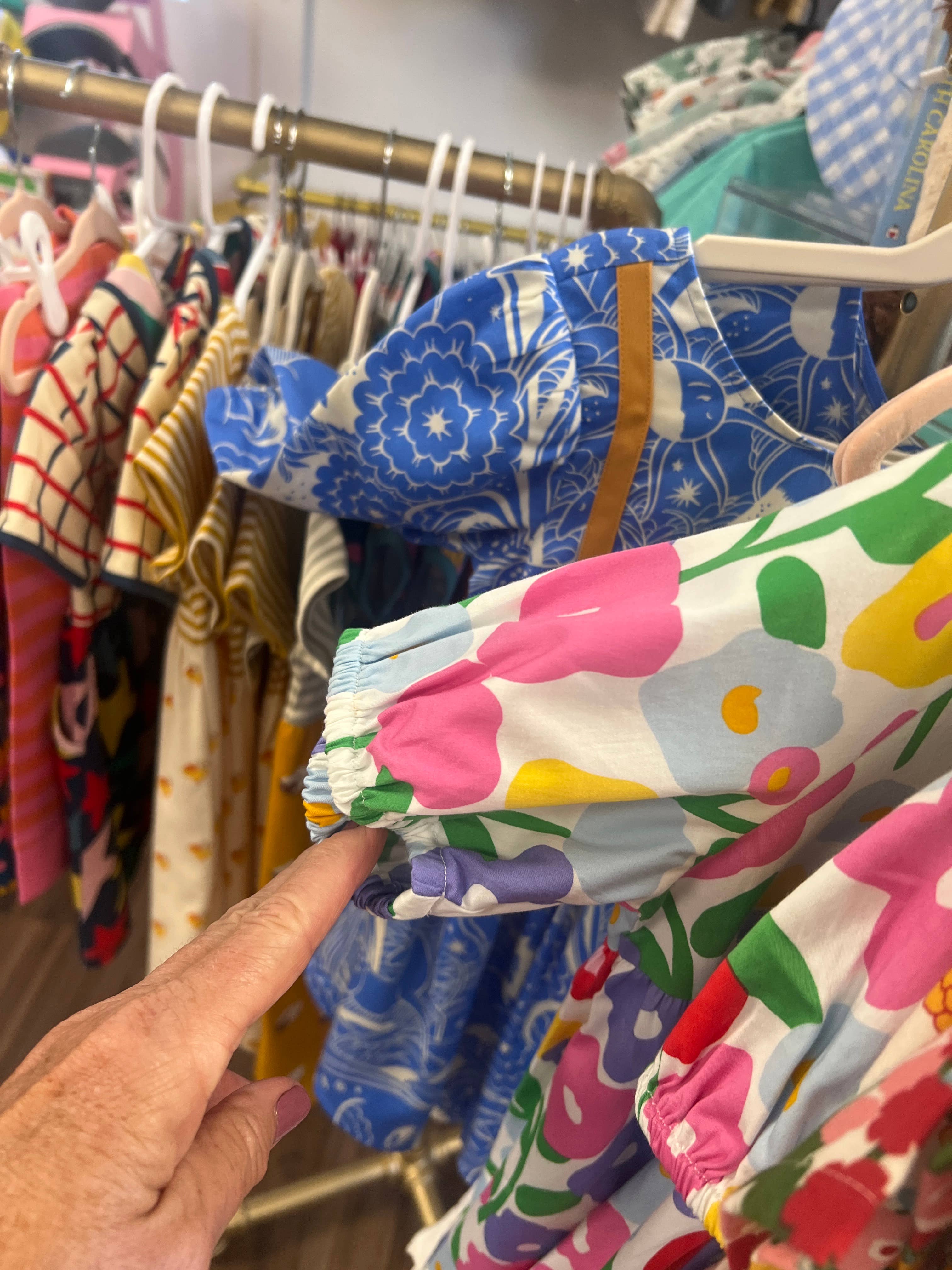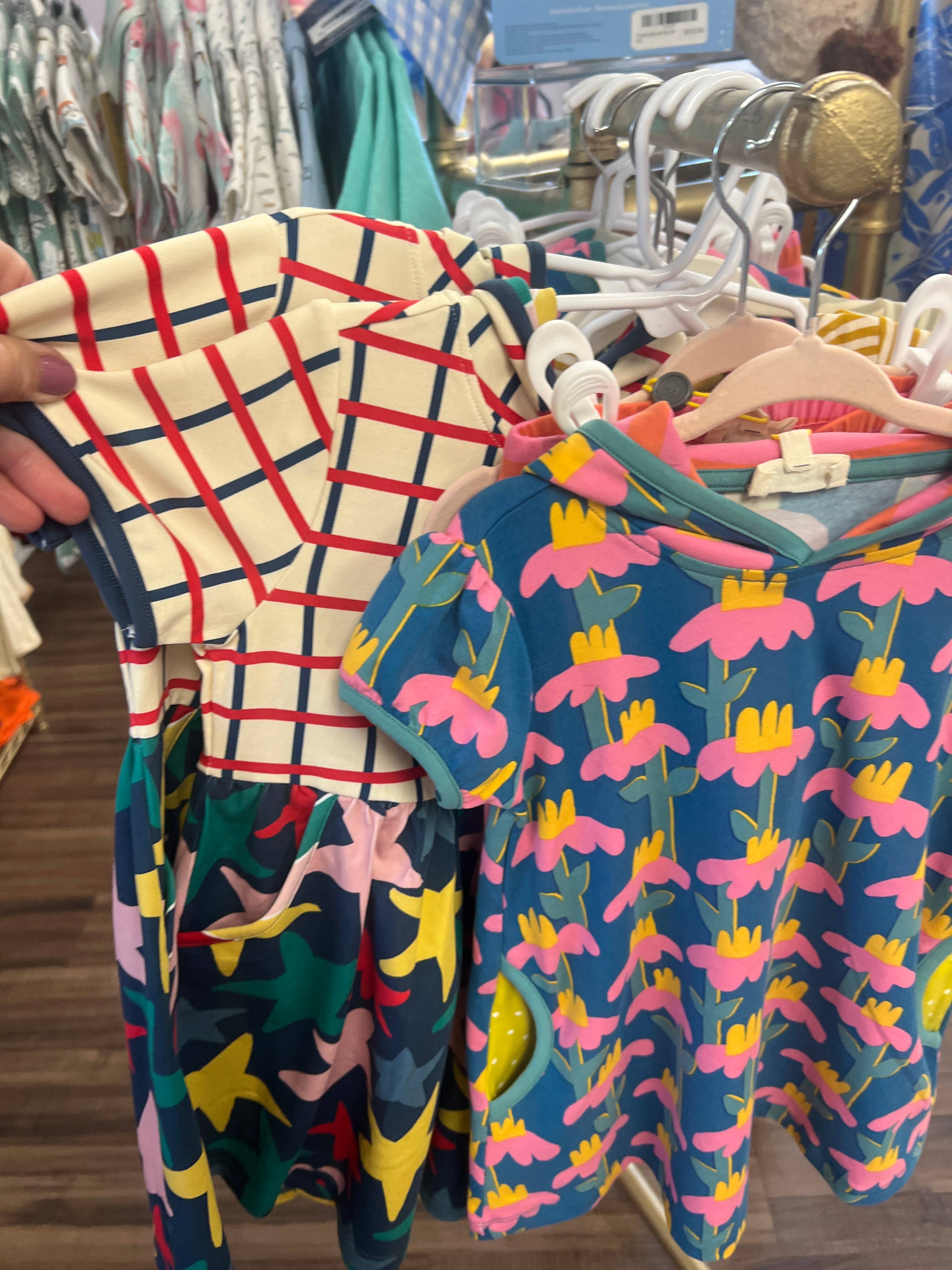 Such fun and quirky, but lovable patterns and prints from Finding Foxtale! Makes out quaint boutique sing with color. The pieces are our flagship at front.