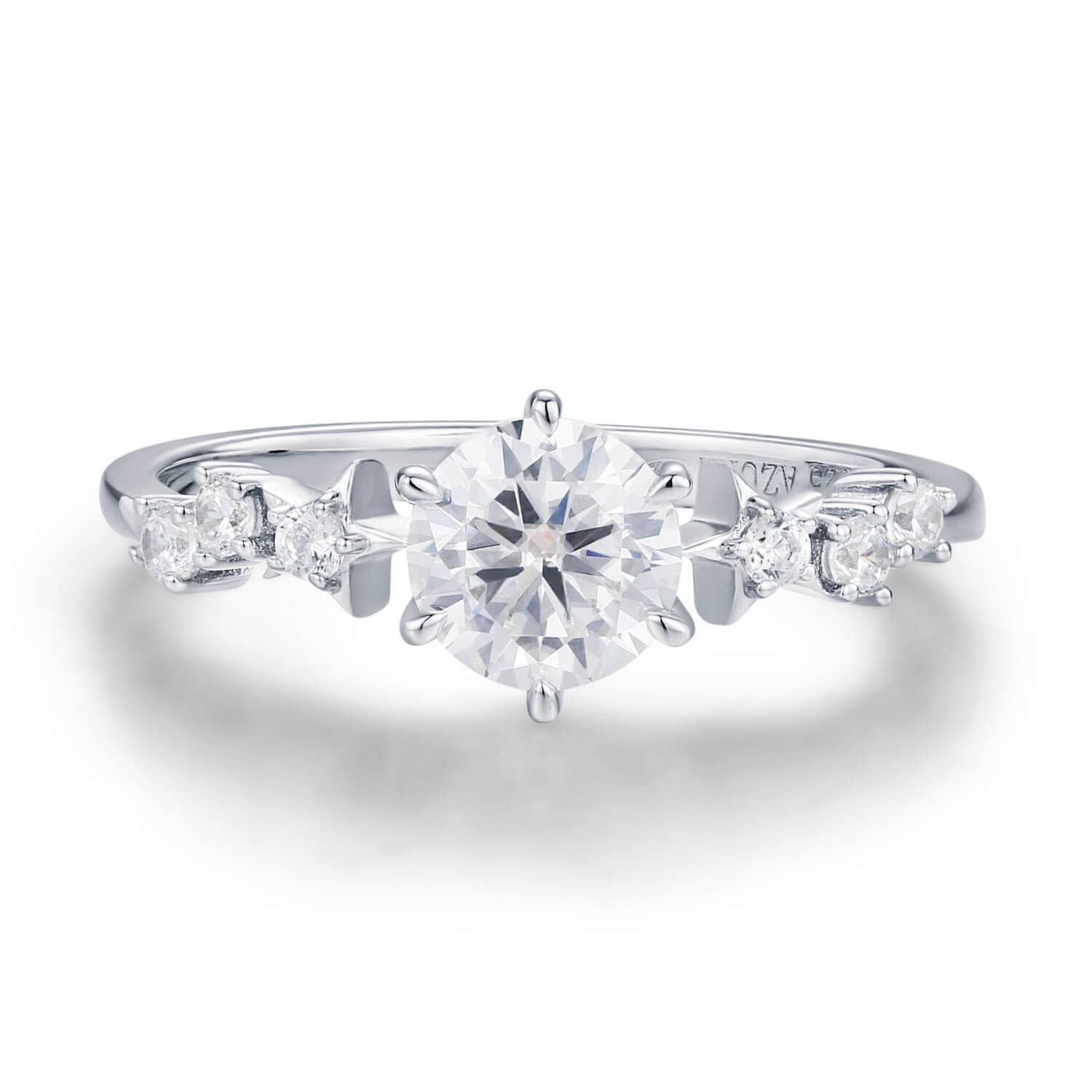Plum Blossom Moissanite Engagement Ring in Sterling Silver