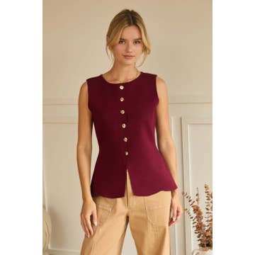 FINE KNIT BUTTONED SLEEVELESS TOP W1557TIA
