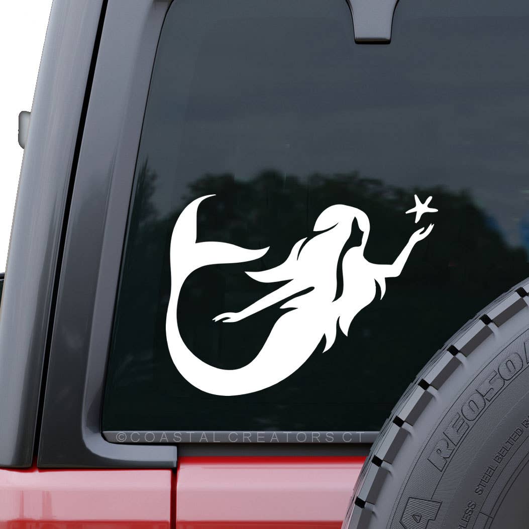 Mermaid with Starfish Car Window Decal (White, Packaged)