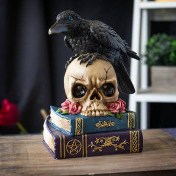 SKU: RSTATUE1033 Made in United States Color: Black Material: Resin Occasion Theme: Halloween Season: Fall and Year-Round Style: Modern Theme: Gothic Product Language: English Weight: 0.74 kg (1.63 lb) UPC: 740111937245 Product Materials: Recycled Packaging: Recyclable, Recycled, and Reduced Production: Fair trade