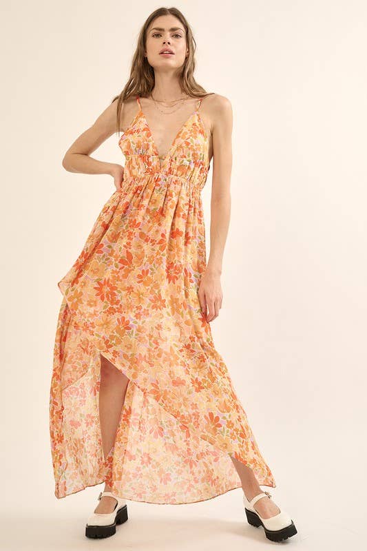 Panache Apparel Co. - Wholesale Dress - Women's - Orange & Blue Floral Maxi Dress0