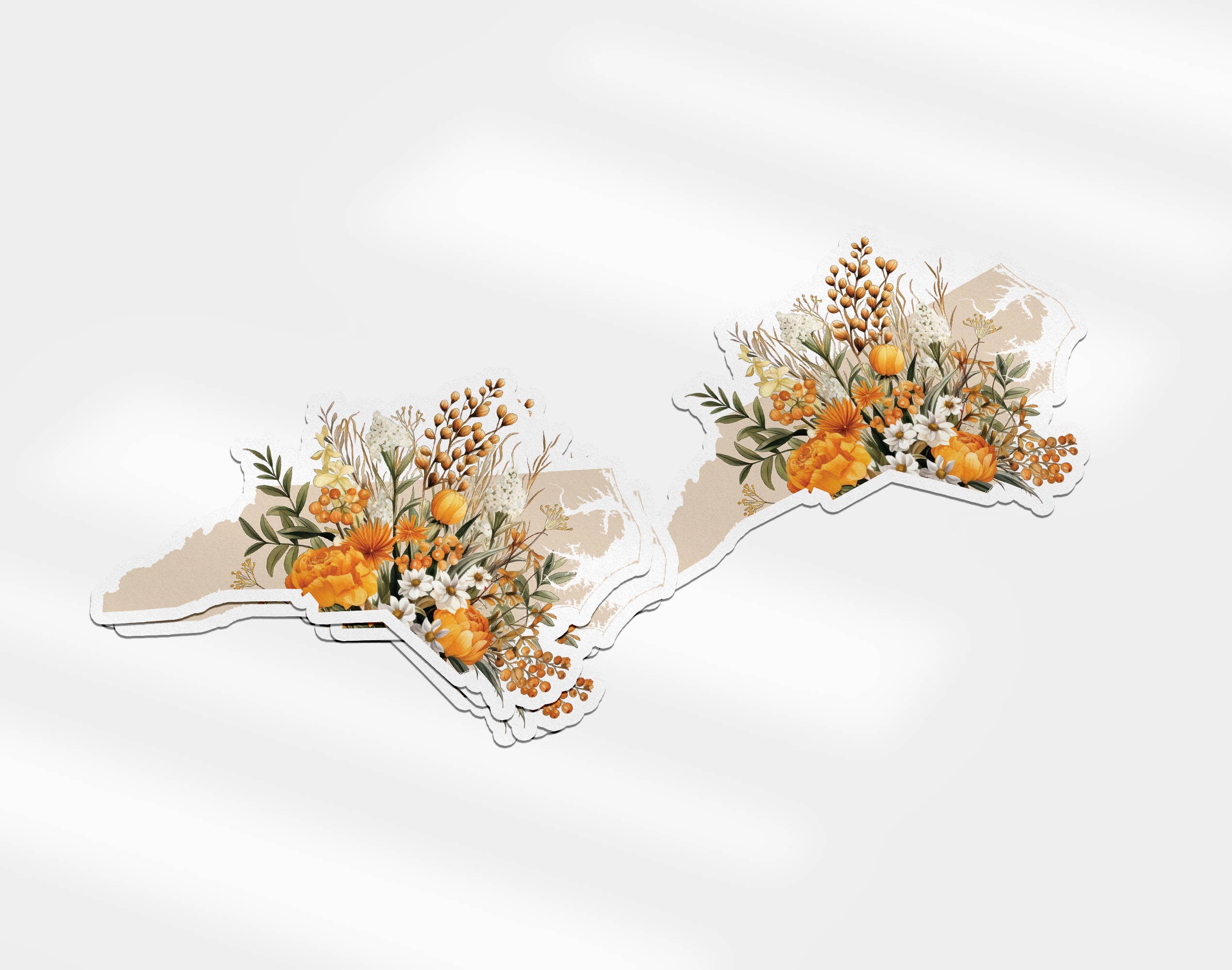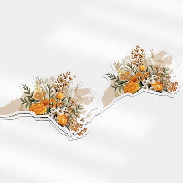 This beautifully detailed sticker depicts a watercolor painting of native plants from North Carolina's mountains to the sea. Rhododendron, longleaf pine, dogwood, magnolia, sea oats, and Venus flytrap are framed by an outline of the state. The sticker is available in two sizes. The large 6" sticker is perfect for larger surfaces like cars, coolers, and laptops. The smaller 4.5" sticker is great for water bottles and notebooks. Both are made of thick, durable vinyl, good for indoor or outdoor use.