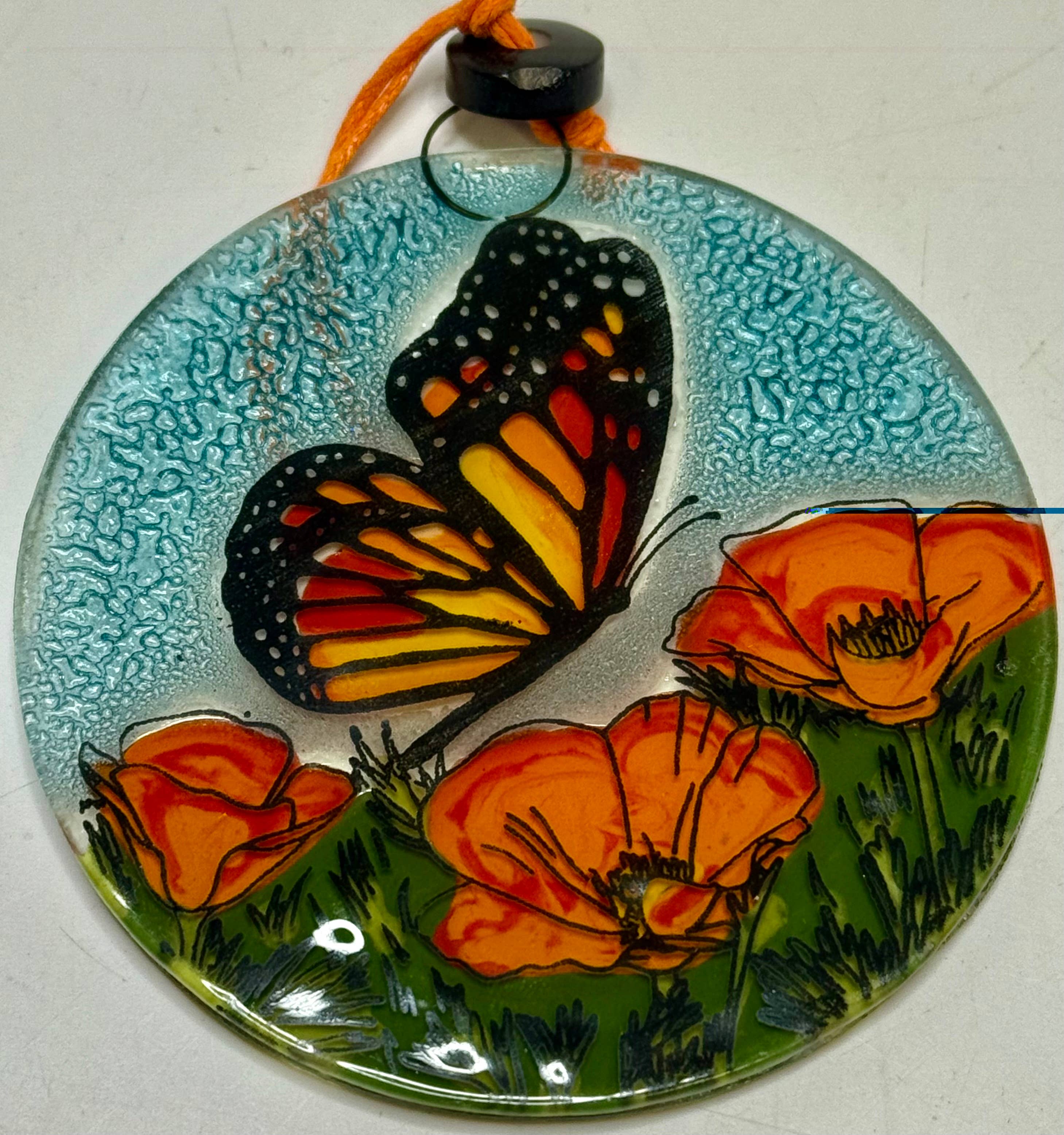 The beauty of nature can be captured with this hand-painted oyster shell ornament, featuring a stunning watercolor butterfly. The luminous mother-of-pearl base highlights the butterfly's vibrant hues, while the gilded edge and high-gloss finish add a touch of luxury. Strung with a white satin ribbon, this unique ornament is ready to enchant any space or make a memorable gift.