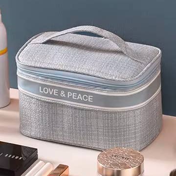 6 x 9 cosmetic pouch in vibrant blue includes the names of key landmarks on Martha's Vineyard. Sturdy and dainty, this pouch holds beach essentials.