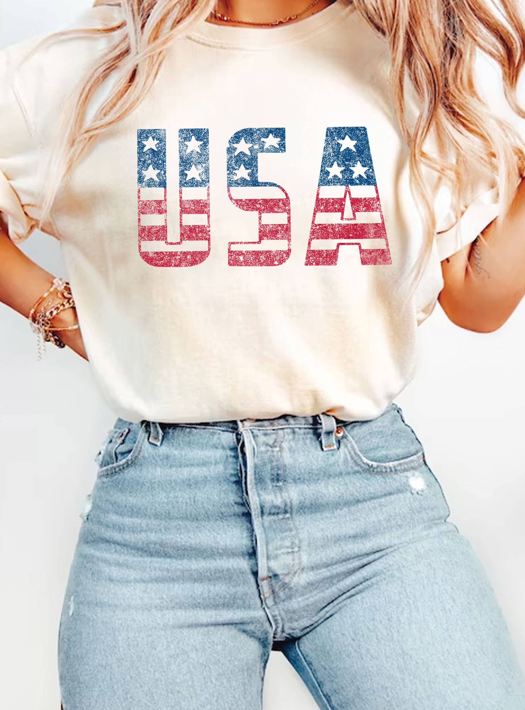 USA 4th Of July T-shirt - Summer T-shirt - Graphic T-shirt - Western Apparel This tee is a buttery soft feel and unisex sizing giving it a comfortable fit. It is a 100% soft style cotton shirt. Style: Comfort Colors - Please make sure you select the right color when checking out. Multiple color options to choose from. Silk Screen Transfers Care Instructions: We recommend washing inside out, cold water, gentle cycle. Tumble dry on low. Do not iron directly on design.