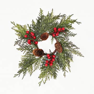 Add holiday cheer with these Pink Artificial Pine Wreath! Decorate your home with this pink pine wreath. You can lay the wreath flat and use it as a Christmas candle ring or add a vase to create a seasonal table centerpiece. Use it to add color to kitchen cabinets, dining room chairs or windows! This wreath is not just limited to Christmas, but can also be used for decorating Easter, New Year's, Valentine's Day, and so much more. It's made to imitate pine with a splash of color! Its wired branches are wrapped and attached to a metal ring base. Enjoy curving and bending the branches for the perfect look! Outside Diameter: 12" Dia. Inside Diameter: 4" Dia.