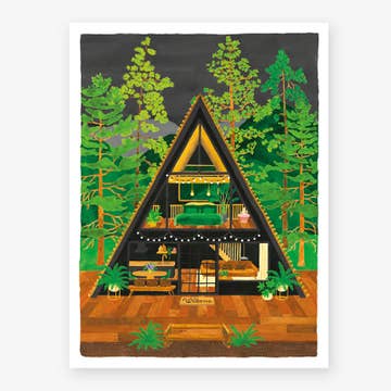 This listing features the Mountain A-Frame 8x10 Print. Printed on recycled cream colored speckle-tone card stock. This poster was inspired by mid-century architecture, illustrated in a modern minimalistic style. Frame not included. This poster is designed and printed in Michigan, on recycled Michigan made paper. Packaged in a certified compostable Eco Bag.