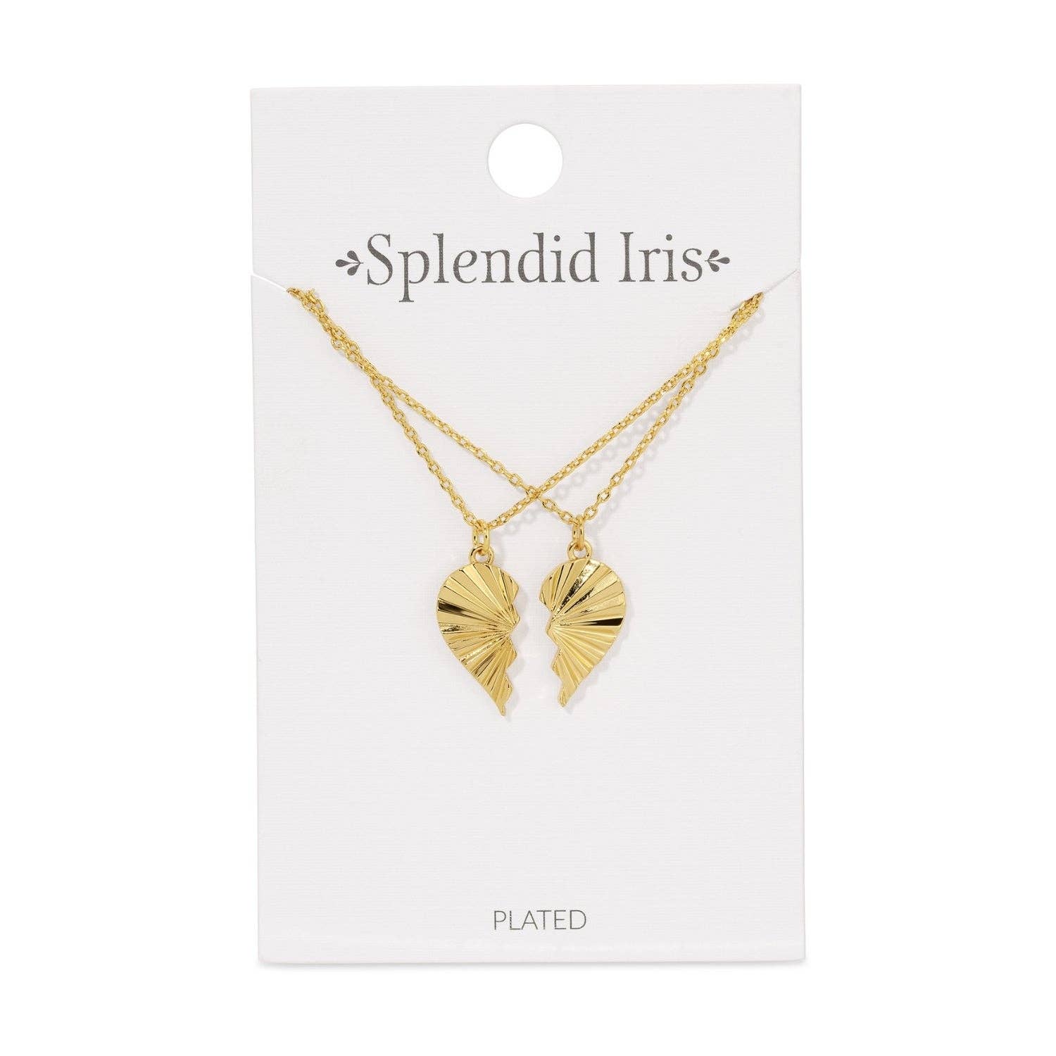Friendship necklaces are back, and these are perfect for all ages! Set/2 Coordinating 18" Necklaces 18k Gold or Rhodium Plated Brass Base Packaging: Single Necklace Card holds 2 Necklaces