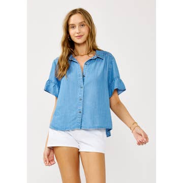 Wholesale Chambray Button Down Shirt With Roll up Sleeve - 41778T