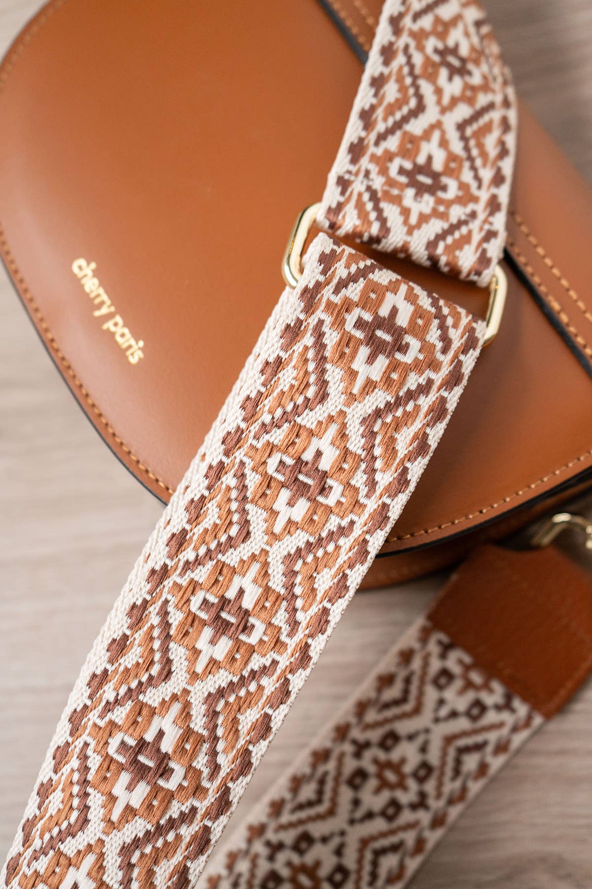 Canvas shoulder strap trimmed with grained cowhide leather. Width: 5cm - Minimum length: 70cm, maximum: 120cm