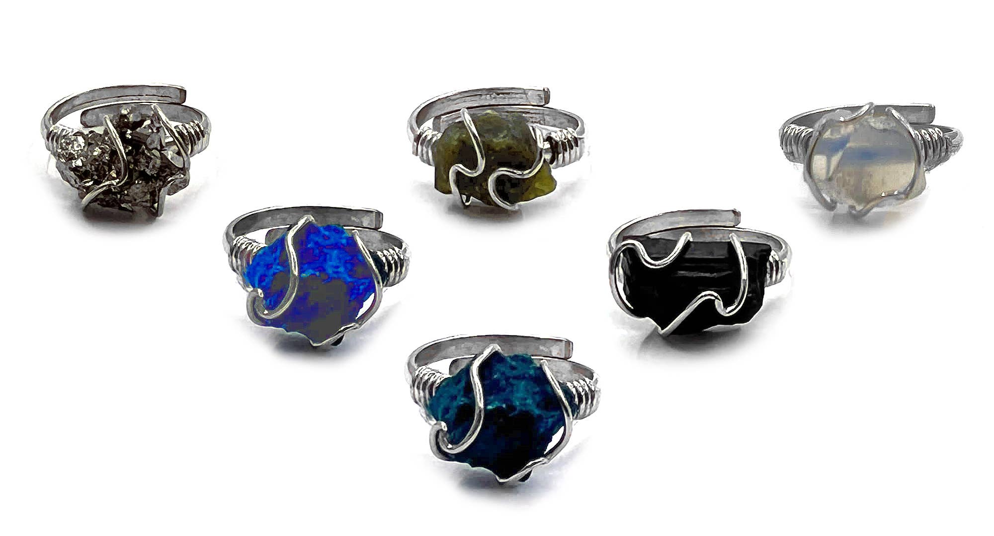Wire Wrapped Raw Stone Adjustable Metal Ring