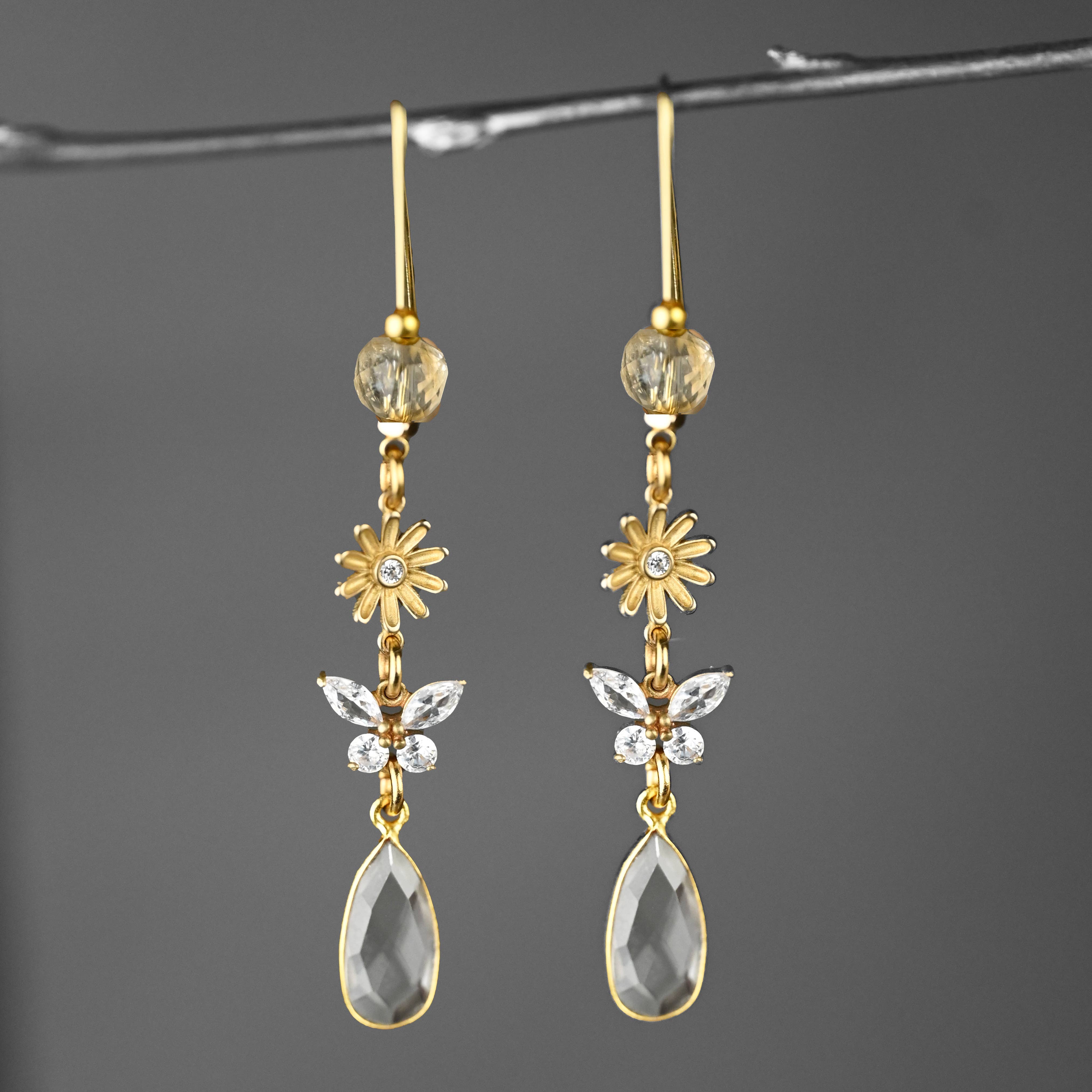 * 24k gold plated tulip and 18k gold plated over brass hook * or stainless steel tulip and silver rhodium plated over brass hook * water resistant * dangles at about 1.5" * nickel / lead free * produced in the USA with materials ethically sourced