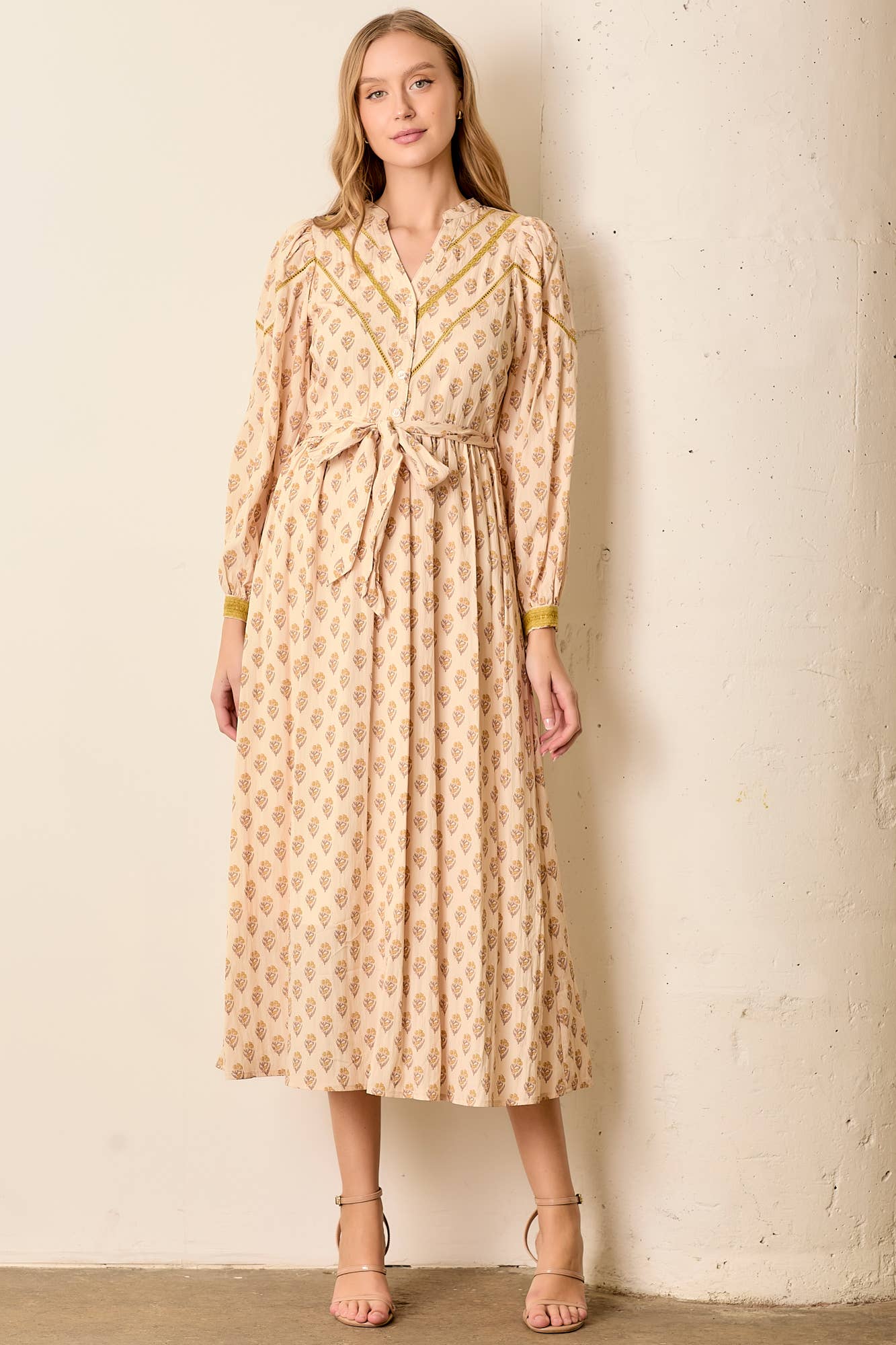 EMBROIDERED FLORAL SOLID LONG SLEEVE DRESS