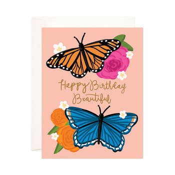 This beautiful happy birthday card is a BEST SELLER, exuding a magical vintage vibe with its arched type. The vibrant orange and blue make this birthday card stand out, adding a bit of pizzaz to any card display. Illustrated with love in our charming little red barn studio nestled in the foothills of Santa Barbara. Size: A2 | 4.25" x 5.5" | 10.80 x 13.97 cm. Paper: 110 lb Felt Weave White Inside: This card is blank inside for the sender to add their sentiments Includes: 1 folded card + matching envelope Package: Open-top cello sleeve These enchanting birthday greeting cards are the perfect choice for conveying warm sentiments.