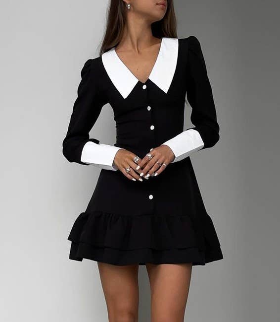 No reviews for DR855Y Autumn Contrast Collar Fitted Black Dress for Women yet.