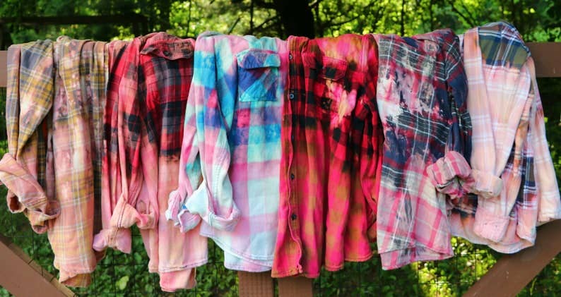 Hand drizzled bleached flannel shirt. Perfect for the fall and winter season. Every piece is made with the utmost love and care. Great for a night out or relaxing by the cozy fire.