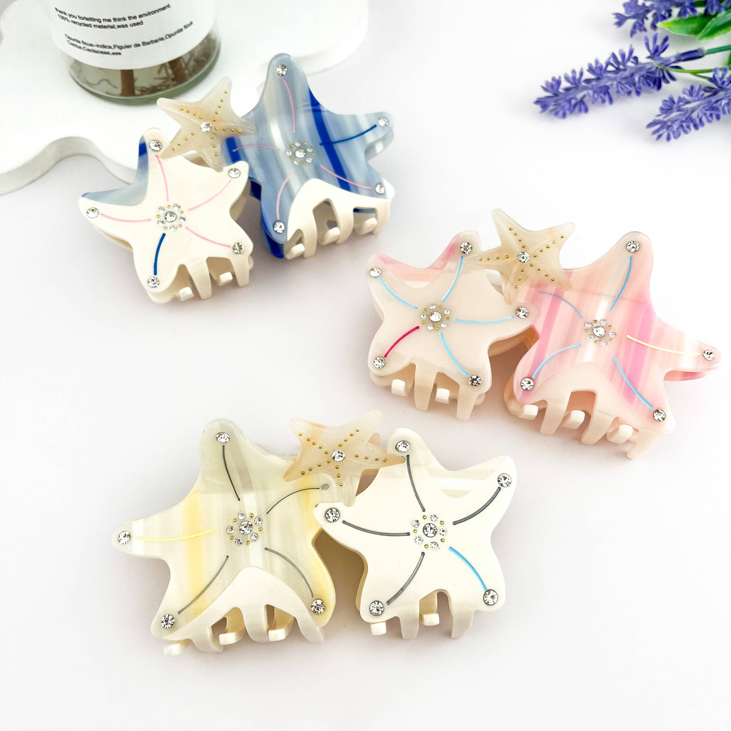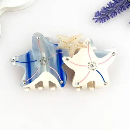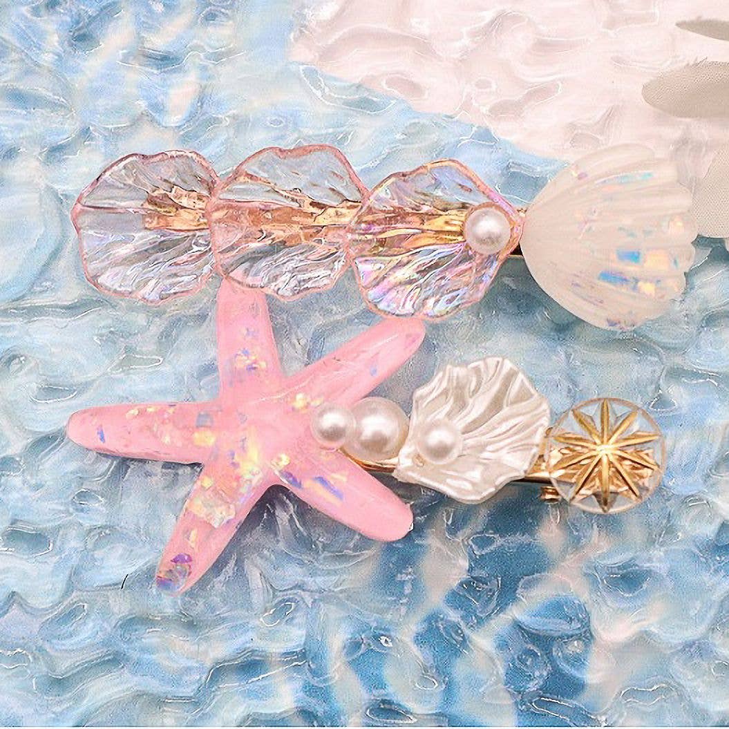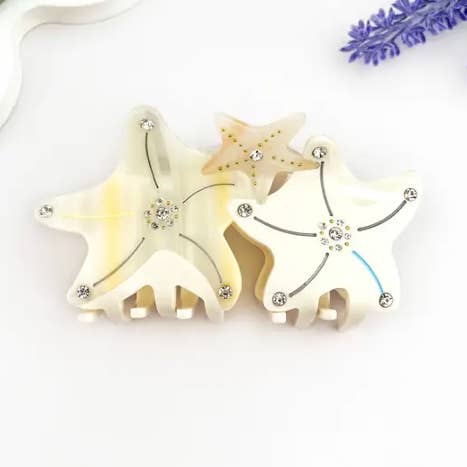 Material - Plastic/resin Handling Process- Handmade Size and Weight 10.2cm, 4IN, 33g Description: Bring a dreamy ocean vibe to your hairstyle with this iridescent starfish hair claw clip. Embellished with delicate faux pearls, it shimmers in the light like a magical treasure from under the sea. Whether you're heading to a beach party, summer festival, or just want to feel the coastal breeze in your everyday look, this charming accessory makes waves. A perfect piece for summer, vacation season, or adding a splash of American coastal flair to any outfit! 🌊✨🇺🇸 #SummerStyle #BeachVibes #AmericanCoastal