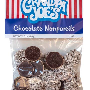 2oz hanging bags of nonpareils Receive: 2 cases (48ct) Milk Nonpareils 2 cases (24ct) Dark Nonpareils 1 FREE compact counter spinner display, with Hooks and Signage (rack dimensions 12"W x 12"H x 12"D)