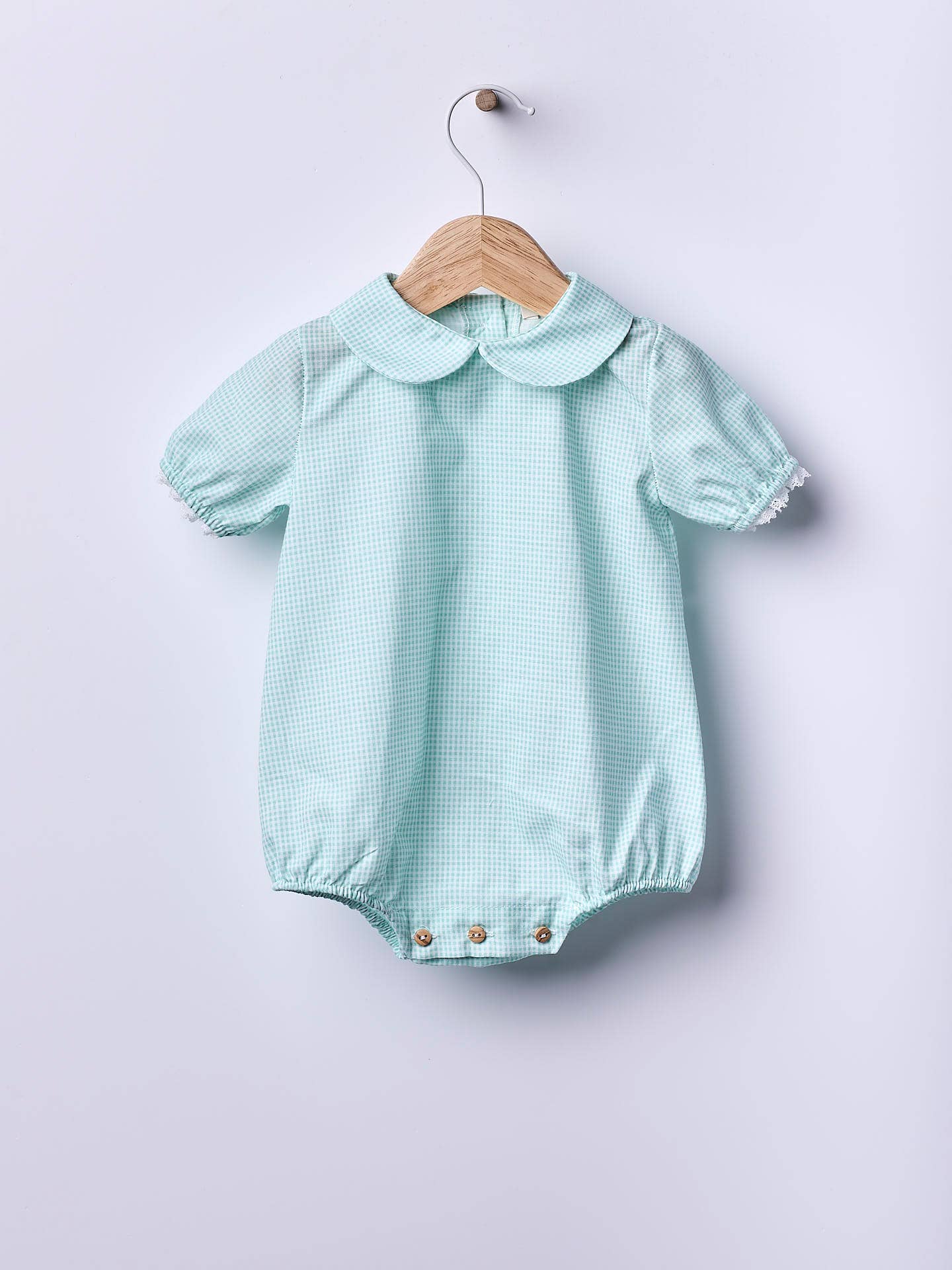 Alças curtas tricotadas em malha fina de algodão orgânico macio e respirável, ideal para meninos e meninas, até 24 meses. O shortie ROMANTIC SPRING DAY fecha na frente nas alças com botões de madrepérola. Produzido em Wholegarment, peça única sem costuras, para o máximo conforto do seu bebê.