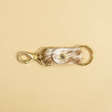 Organize your keys while making a modern statement with Primecut's keychain. - Leather exterior - Solid brass hardware - Features a keyring and clip - Measures approx. 1" W x 4" L This product uses scrap material that would normally be thrown away.