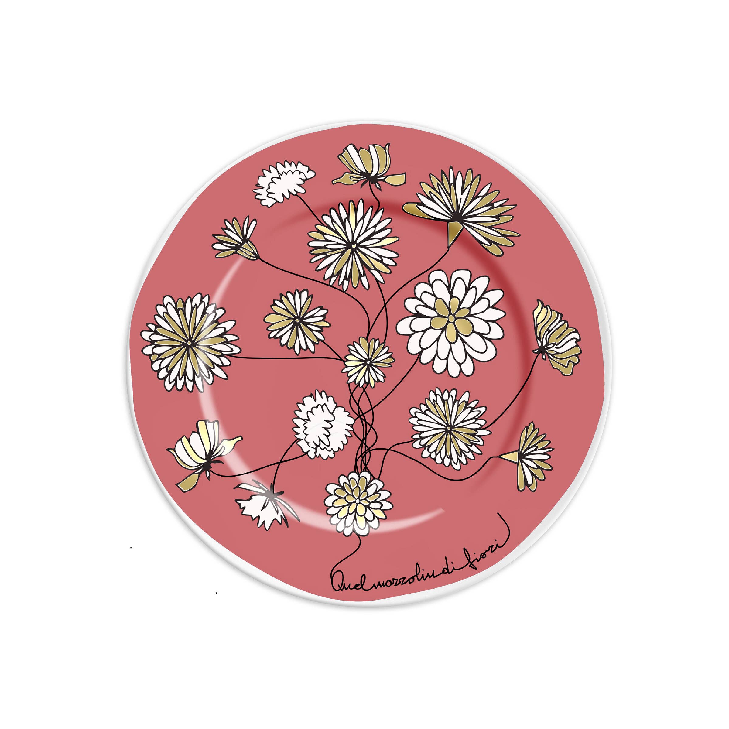 Bouquet Pink Collection Porcelain plate, Ø 16cm, pink and gold color. This collection celebrates flowers as a gift par excellence. A perfect thought for every occasion. These will never fade and can be hung to decorate your home or used as a small service to enrich the table.