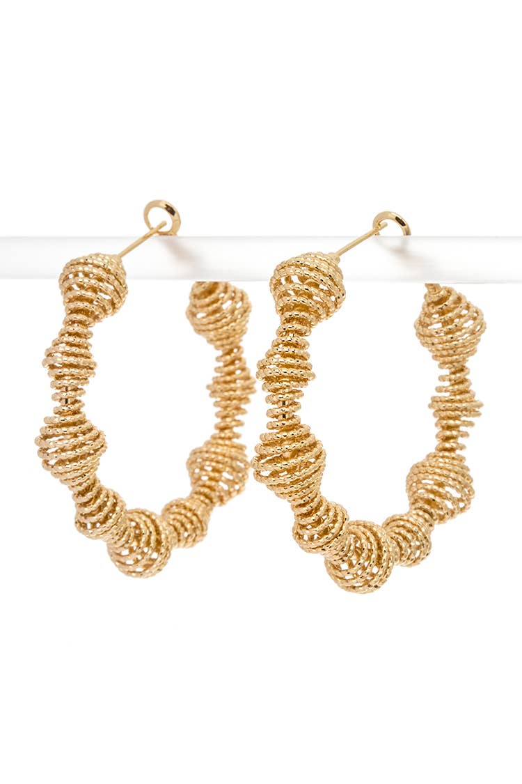 Elevate your accessories game with the Celeste Threaded Wicker Hoop Earrings. Featuring natural wicker with subtle threading details, these hoops are the ultimate blend of chic and earthy charm. DETAILS Base Metal with Shiny Gold Plating 2" Diameter