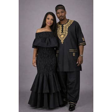 This 7772A African Print Pant Set boasts two pieces set per pack! Crafted from 100% African Wax Cotton, and featuring beautiful all-over prints and short sleeves. This Pull-on Top and Pant Set is sure to enhance any wardrobe. Two side pockets and a head-wrap provide a practical yet stylish finish, and a one size fits most design adds versatility. Features: - One Size Fits Most (UP TO XL) - 100% African Wax Cotton - Beautiful Prints - 3 Pcs Pre Pack - Short Sleeves - 2 Side Pockets - Head-Wrap Included